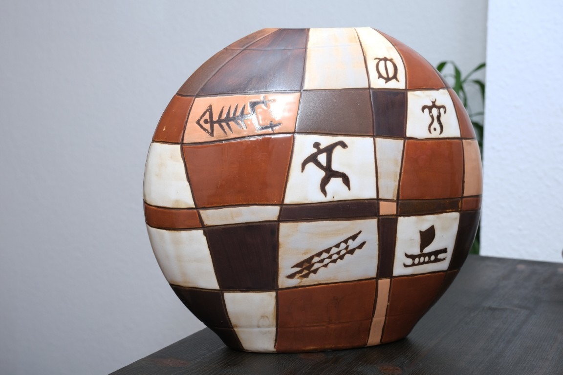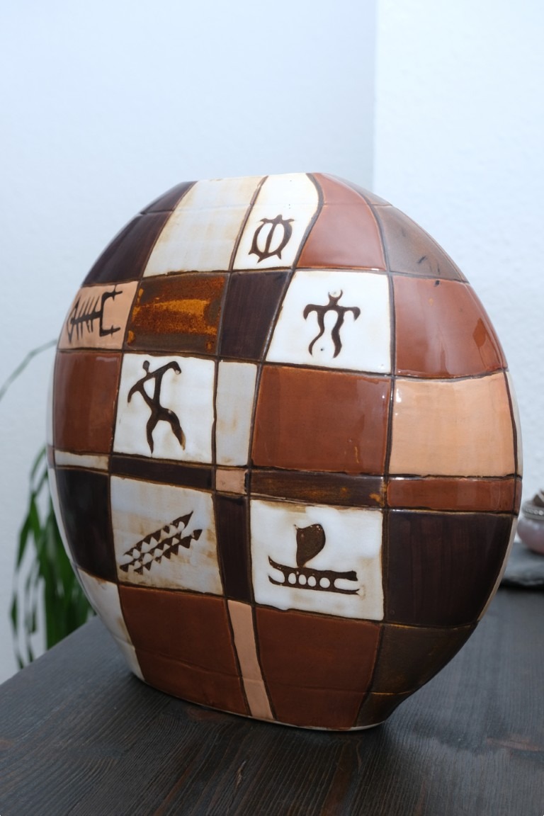 Dekorative Vase rund | Erdtöne mit Ethno-Mustern | ca. 27 cm