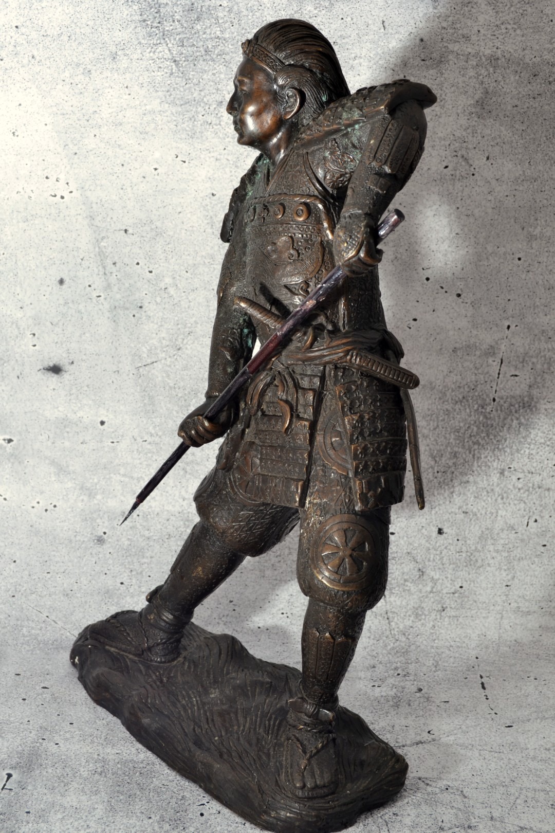 Große „Bronze“ | Samurai mit Speer – wunderschön detailreich – 43 cm hoch